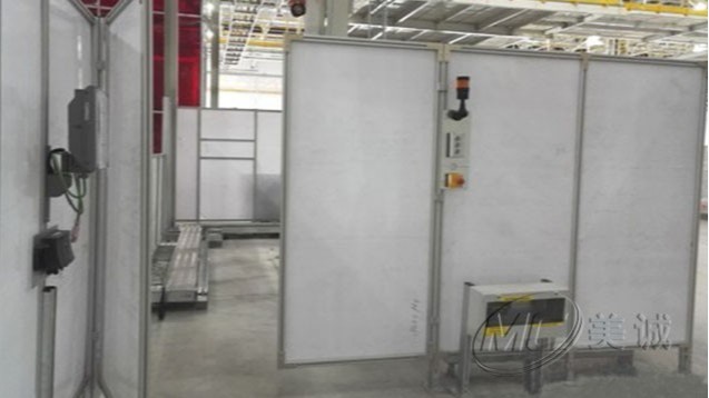 鋁型材防護圍欄:是在正產生產外設立防護措施,局部或全部建立鋁型材防護圍欄,以保證人員和設備安全,部分區域會安裝門或留出通道便于貨物進出和人員檢修。