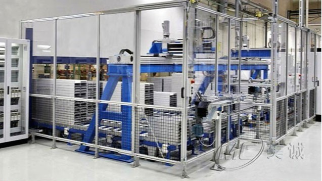 機械設備護欄是在生產流水線外設立防護措施,局部或全部建立鋁型材防護圍欄,以保證人員和設備安全,部分區域會安裝門或留出通道便于貨物進出和人員檢修。